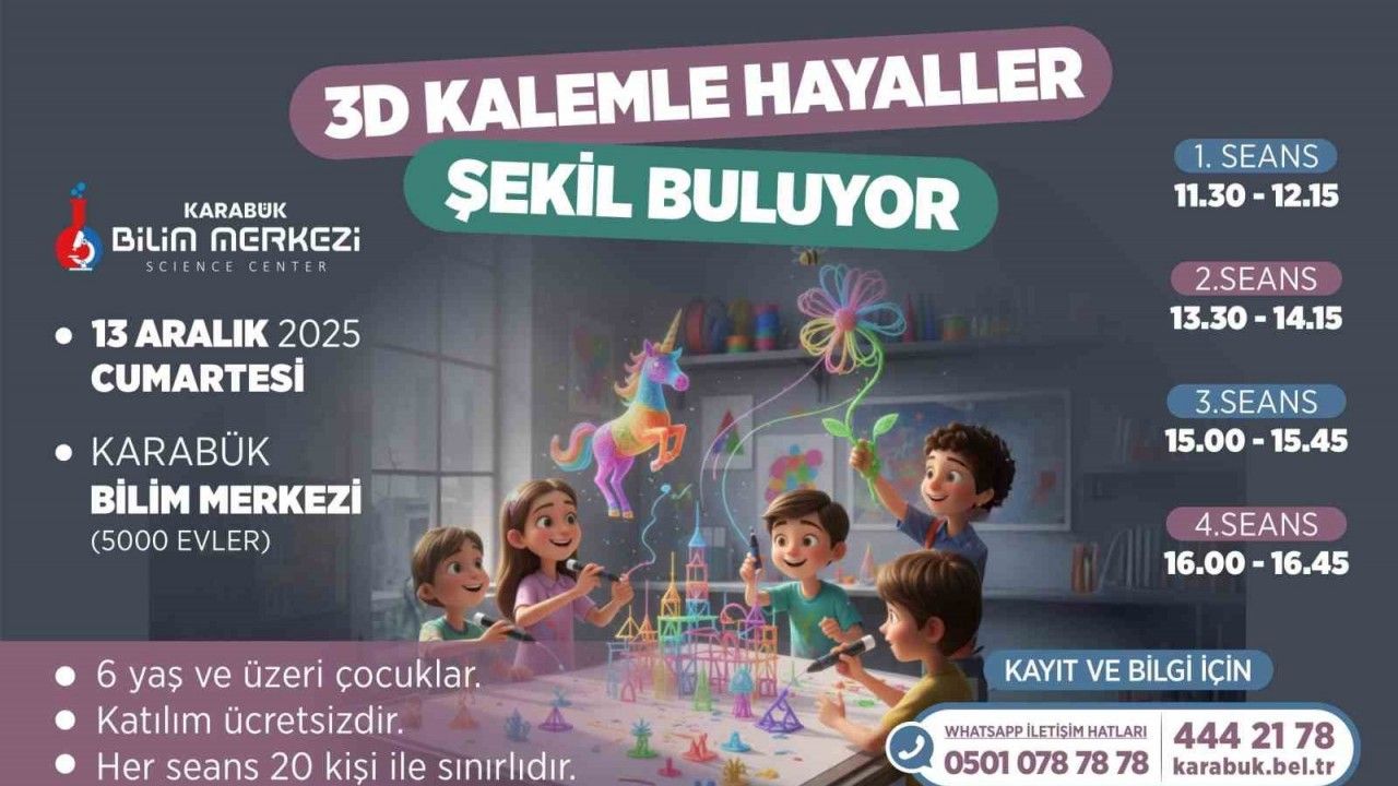 Karabük Belediye Başkanı Özkan Çetinkaya, Karabük Bilim Merkezi’nin çocukların bilimsel üretimine katkı sunan 3 boyutlu kalem atölyesi gibi yenilikçi etkinliklerle gençlerin üreticiliğini desteklediğini ve çalışmaların kararlılıkla sürdürüleceğini ifade etti.