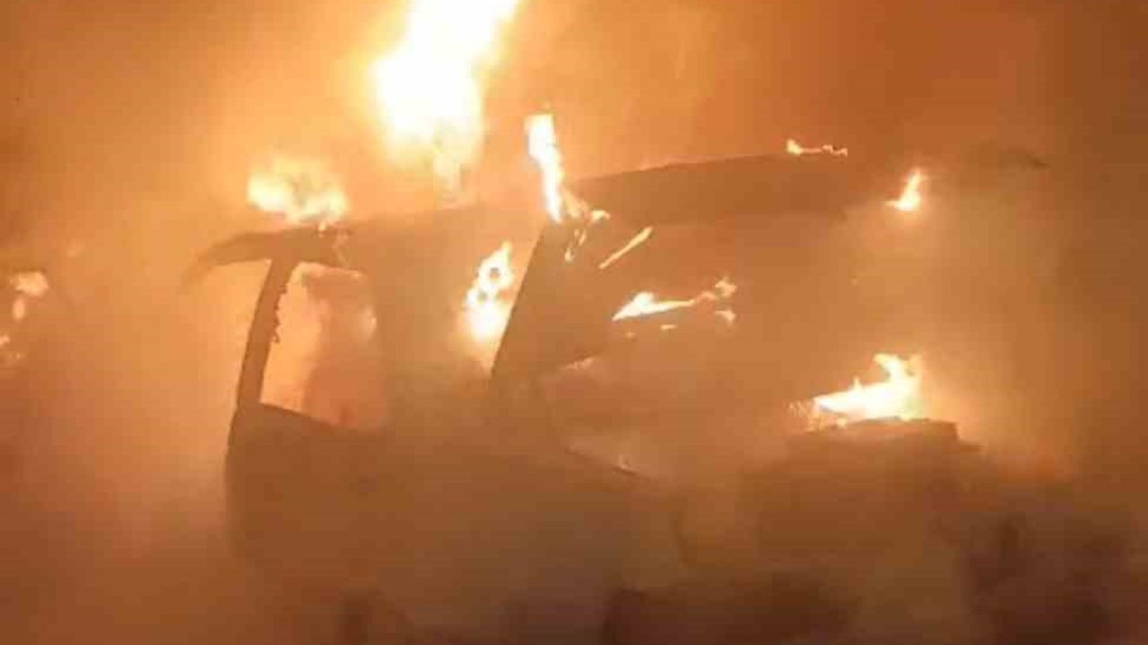 Karabük'ün Safranbolu ilçesinde park halindeyken alev topuna dönen bir otomobil tamamen yanarak kullanılamaz hale geldi.
