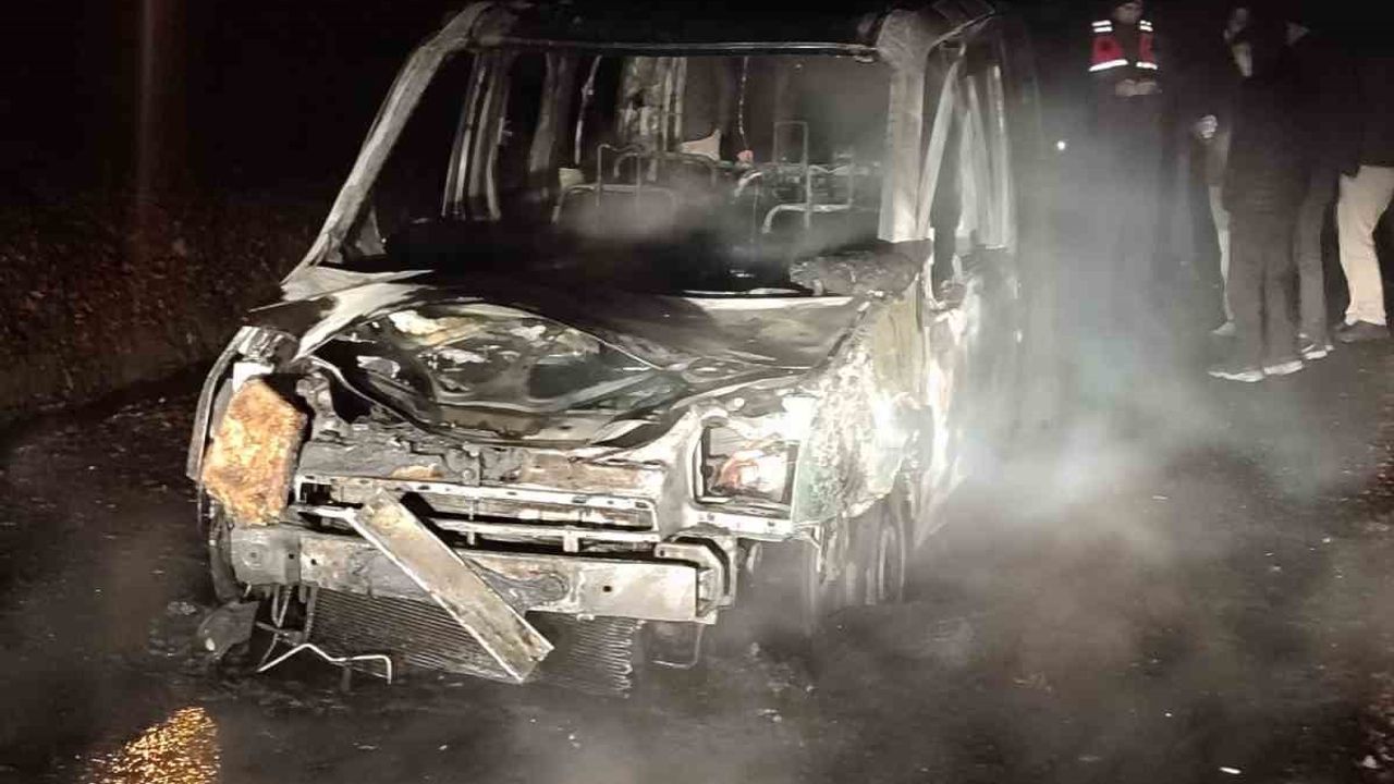 Karabük’ün Yenice ilçesinde seyir halindeyken alev alan hafif ticari araç tamamen yanarak kullanılmaz hale geldi.