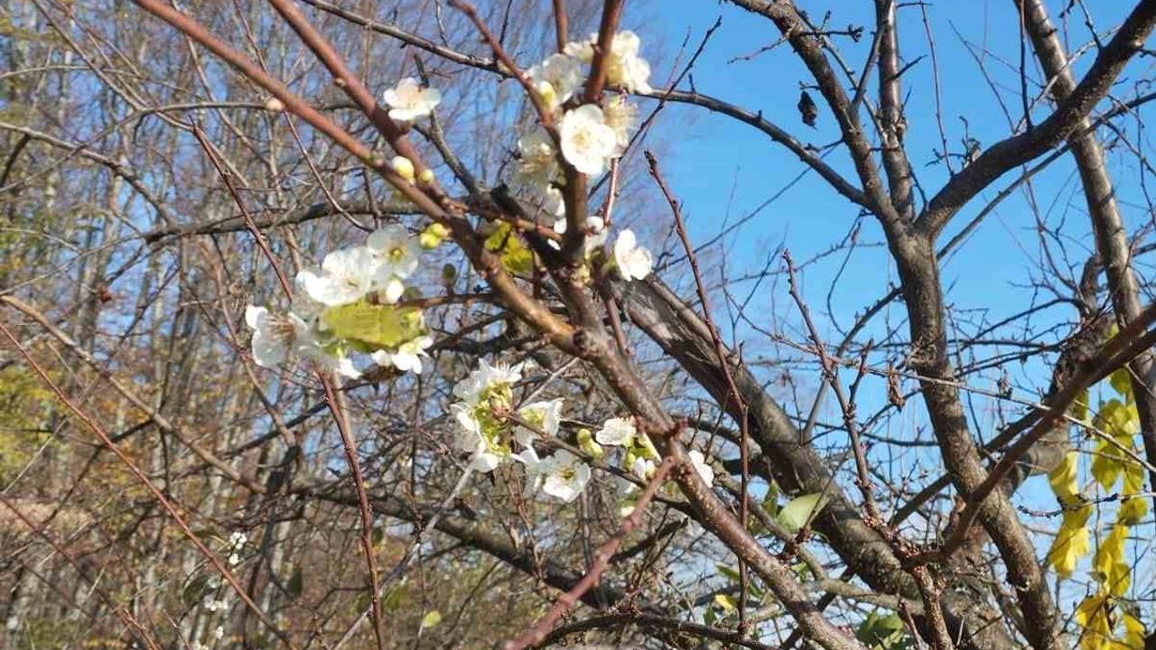 Karabük’ün Yenice ilçesine bağlı Değirmenyanı köyünde Aralık ayında çiçek açan erik ağacı şaşırttı.