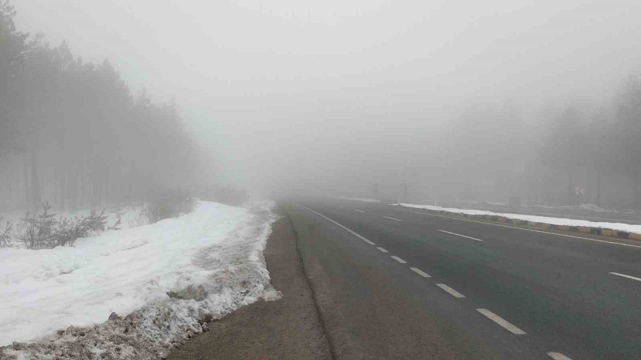 Karabük-Bartın kara yolunda sabah saatlerinden itibaren etkili olan yoğun sis, görüş mesafesini 30 metreye kadar düşürdü.