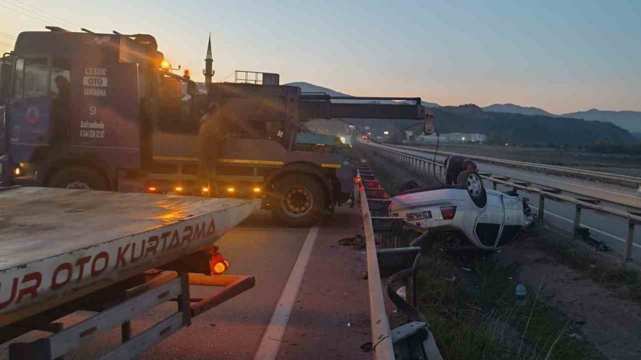 Karabük’te kontrolden çıkan otomobilin demir bariyerlere çarparak takla atması sonucu 2 kişi yaralandı.