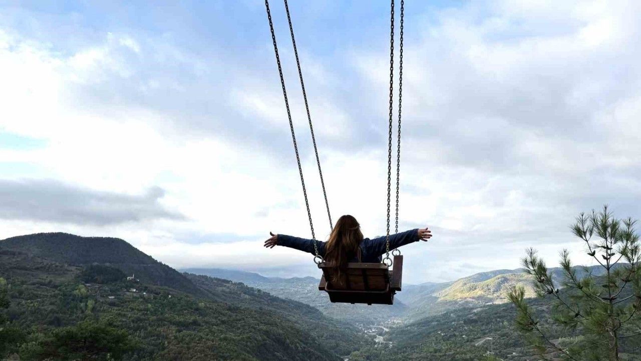 Orman manzaralı seyir terasında kurulan salıncak da ziyaretçilerin yoğun ilgisiyle karşılaştı.